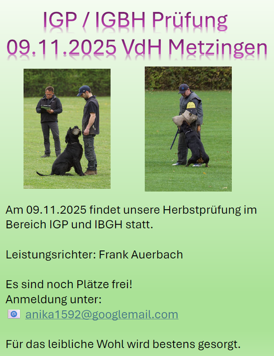 Am Sonntag, den 05.05.2019 fand unsere 1. IGP/BH - Prüfung statt.