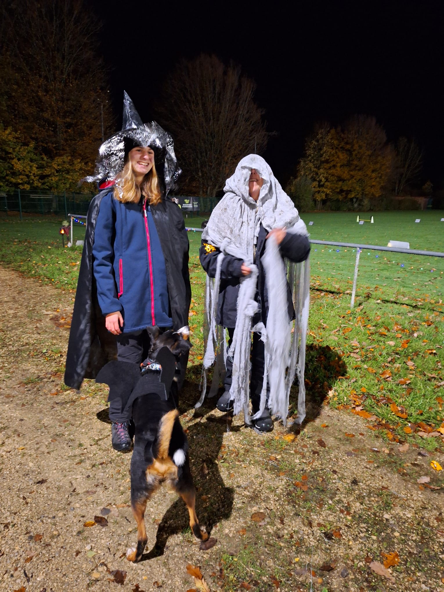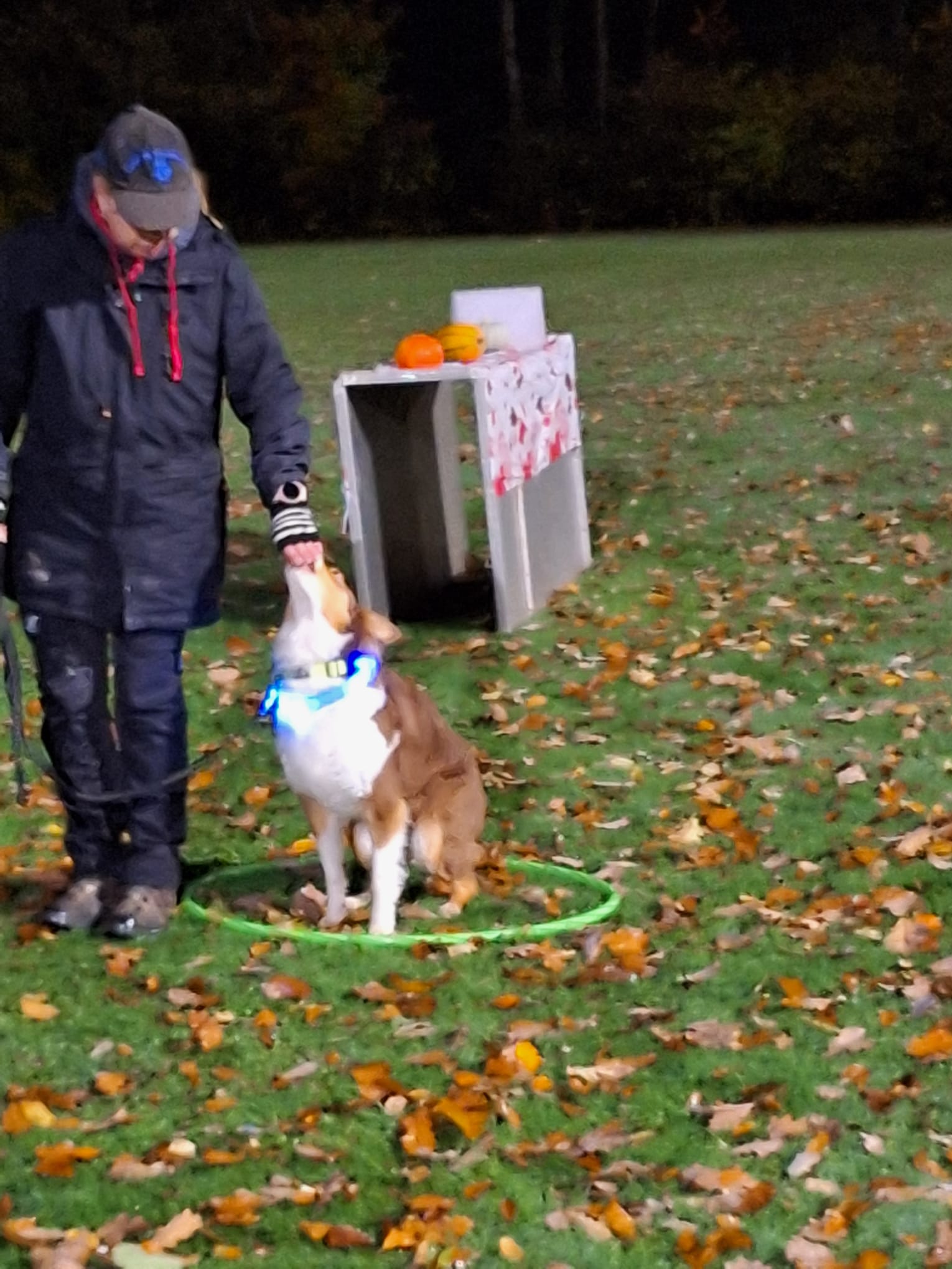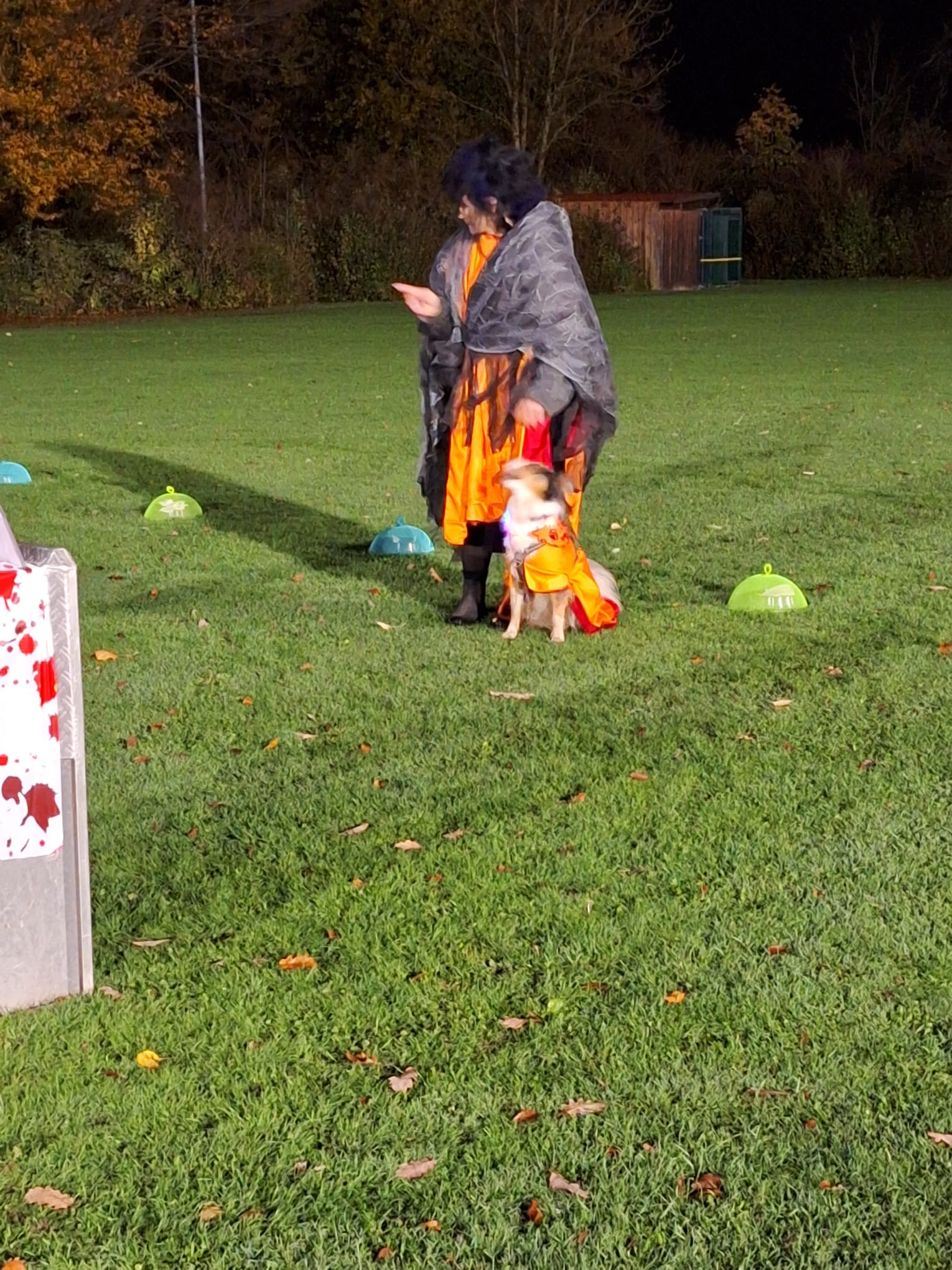 Die Parcours waren thematisch an Halloween angelehnt, mit kleinen Überraschungen und Aufgaben, die Konzentration und Vertrauen zwischen Mensch und Hund forderten. Besonders schön war zu sehen,