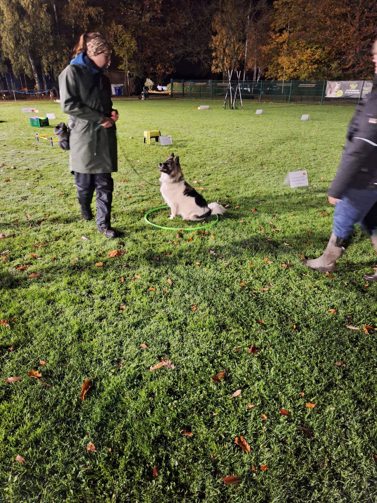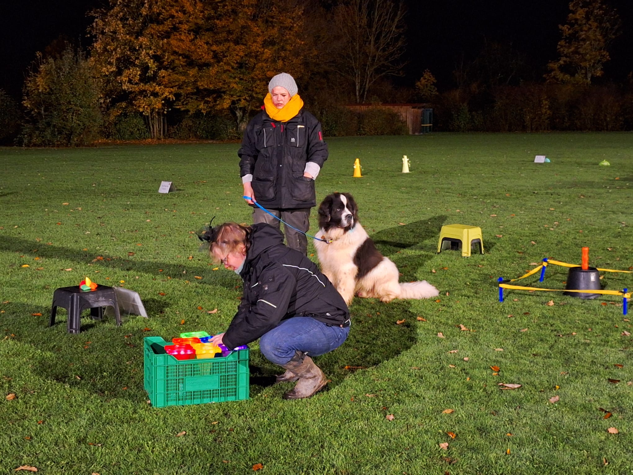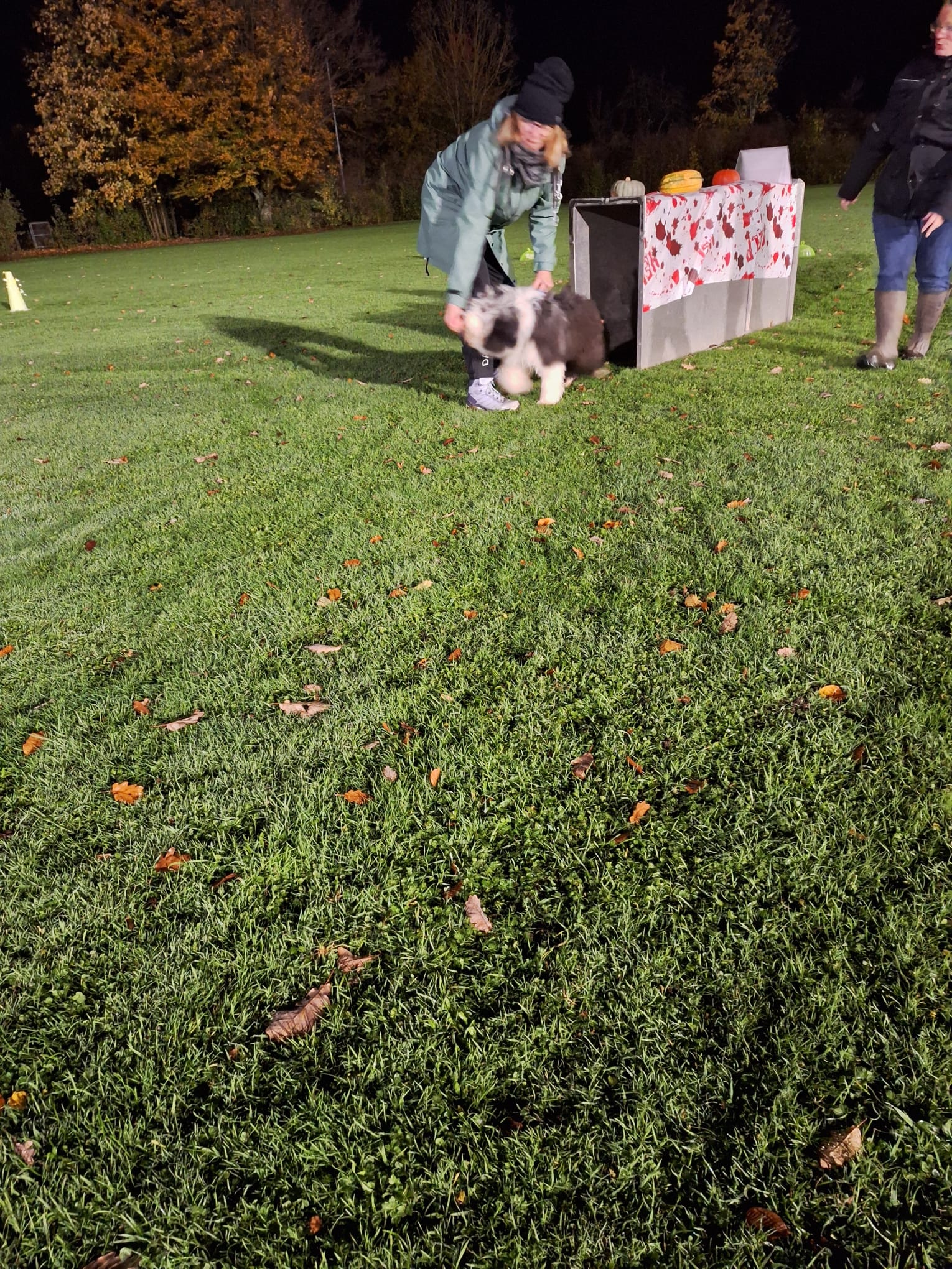 Beim Thema „Geisterwald“ gab es Stationen wie z. B. Hund über eine Brücke, Mensch nebenher, Äste liegen auf dem Weg und mussten überwunden werden, finde den Igel oder suche den Schatz. Alle hatten Ihren Spaß und haben den Parcours super gemeistert.