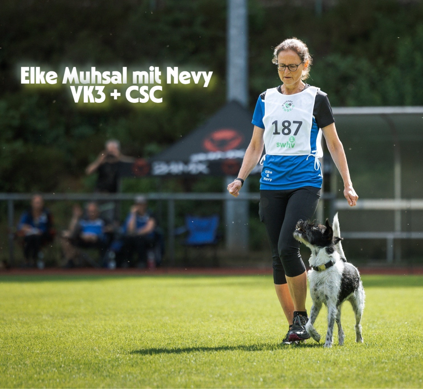 Im Finale des CSC konnten wir dann unseren Jannes Kuhn mit Bounty anfeuern, der sich zusammen mit Lilien und Emily am Ende Platz 4 im Jugend-CSC sicherte (69,79 Sek). Alisa Lutz und Brooke starteten zusammen mit Marc und Gerrit. Die 3 gaben alles und wurden nicht nur mit zwei fehlerfreien Läufen, sondern auch mit dem zweiten Platz belohnt. Sie wurden Deutsche Vizemeister in einer Zeit von 57,85 Sek.